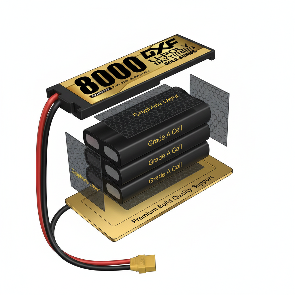 - DXF 3S 8000mAh 130C Graphene Lipo Battery (Quantity based on pack selection)