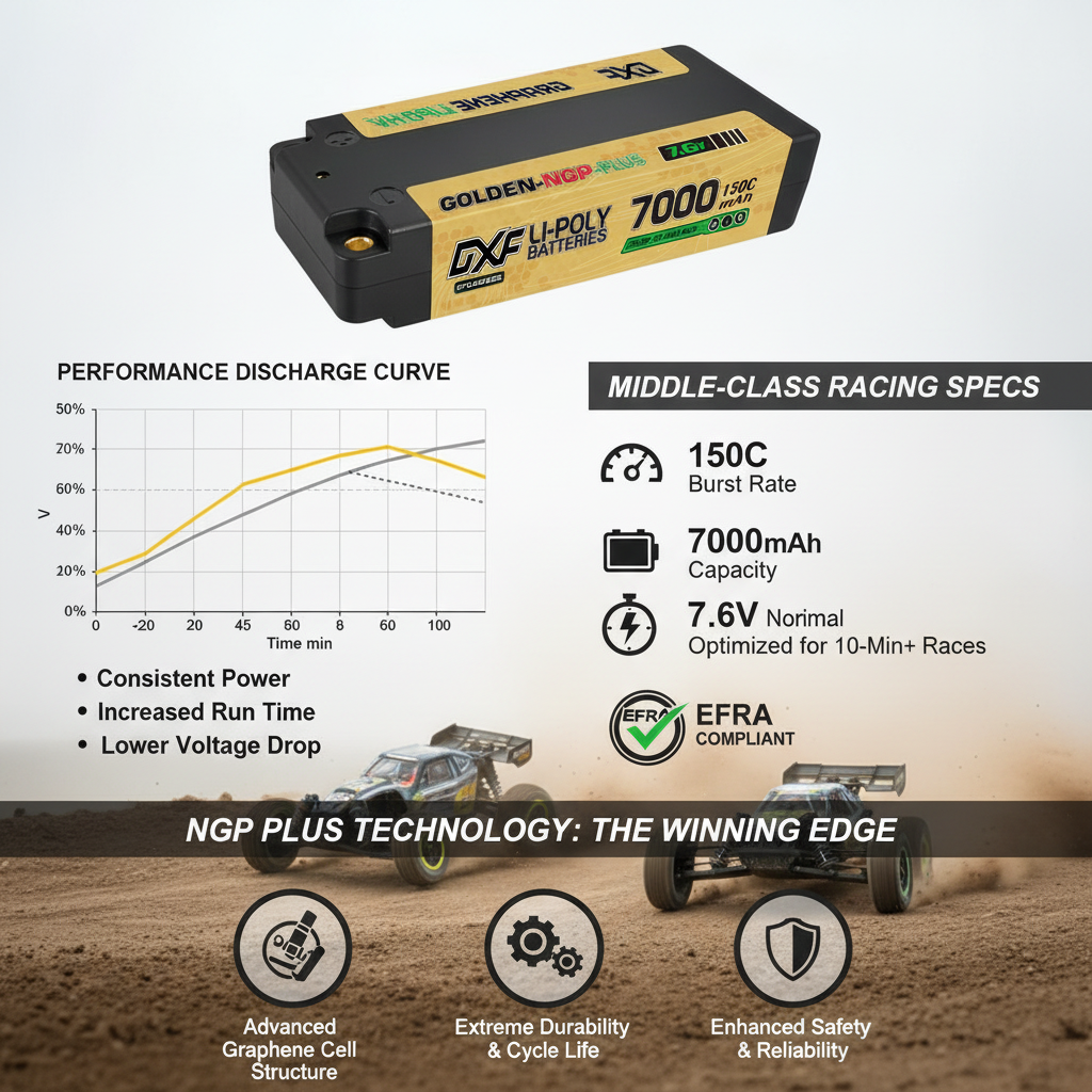 Introducing the NEW NGP PLUS Version - engineered for racers who demand EFRA-certified excellence in a compact middle-size format. The 7000mAh 2S 7.6V delivers explosive 150C power in a perfectly balanced package.
