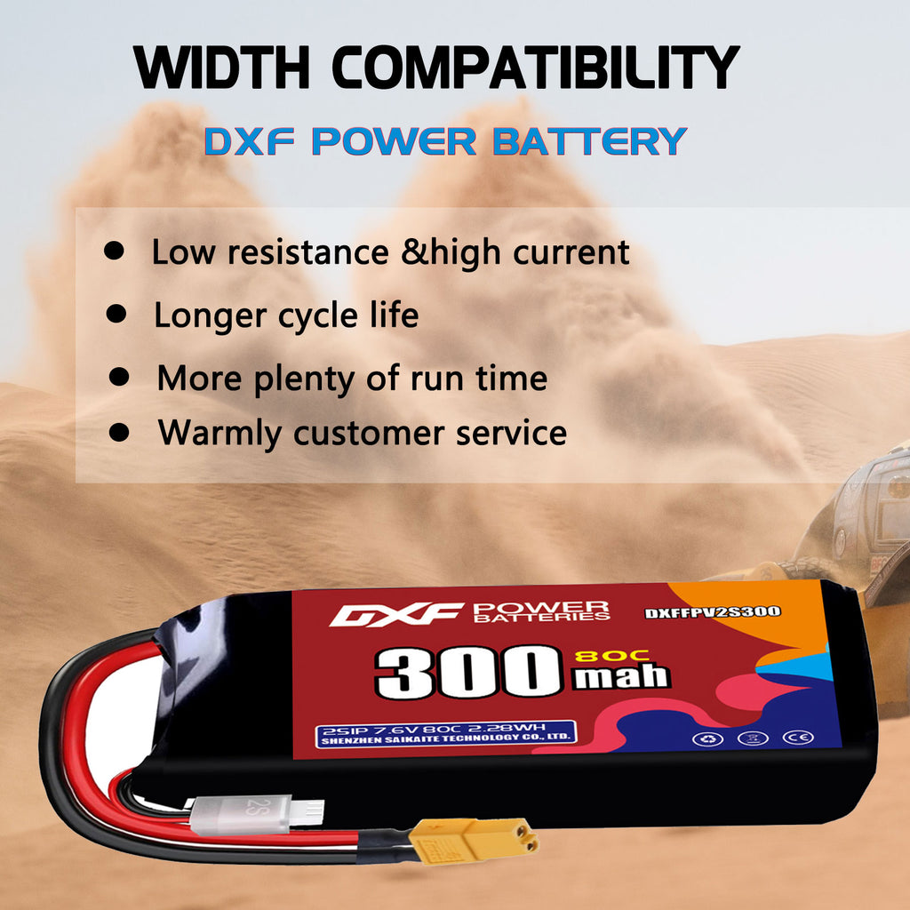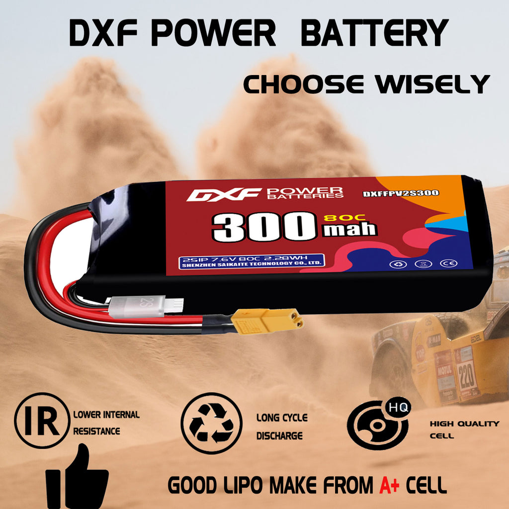 DXF 300mAh 2S 80C 7.6V Lipo Battery Pack for FPV LiPo Battery