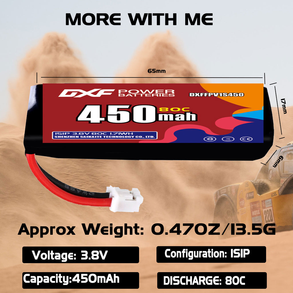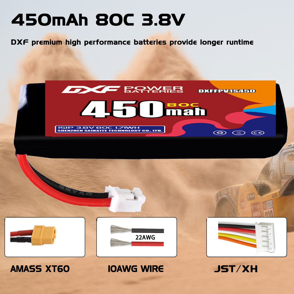DXF 450mAh 1S 80C 3.8V Lipo Battery Pack for FPV LiPo Battery