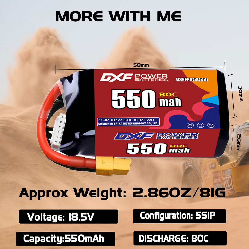 DXF 550mAh 5S 80C 18.5V Lipo Battery Pack for FPV LiPo Battery