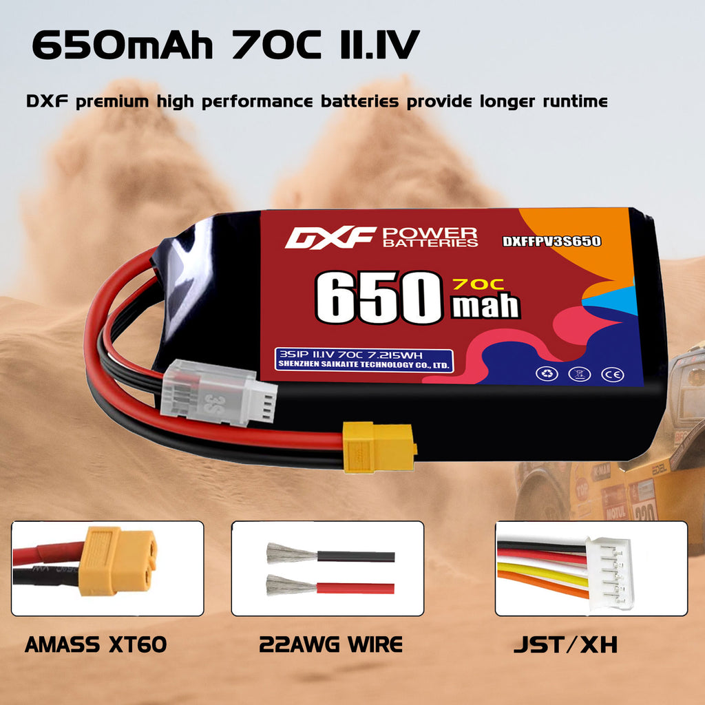 DXF 650mAh 3S 70C 11.1V Lipo Battery Pack for FPV LiPo Battery