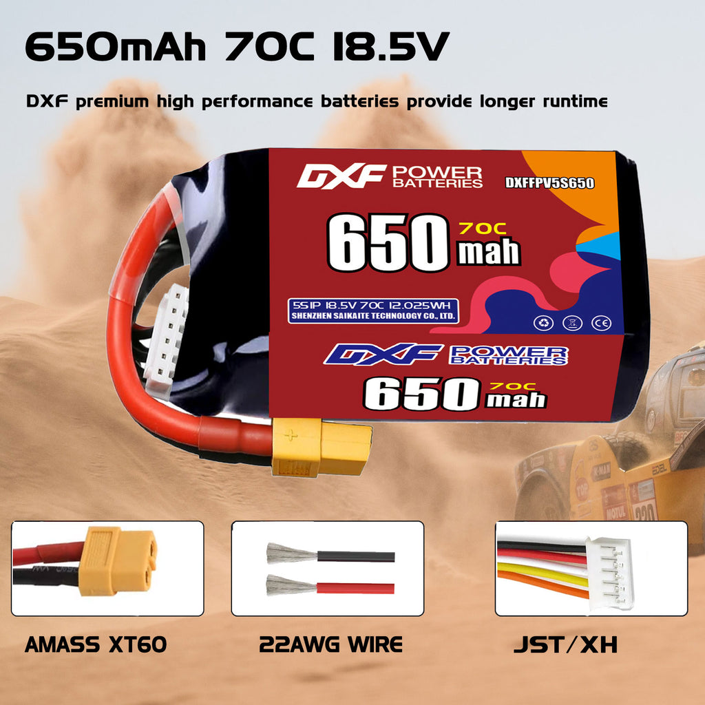 DXF 650mAh 5S 70C 18.5V Lipo Battery Pack for FPV LiPo Battery