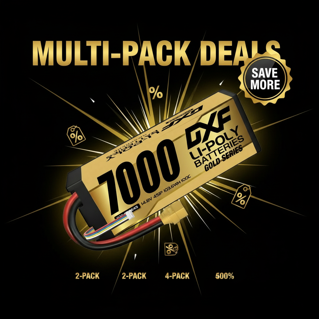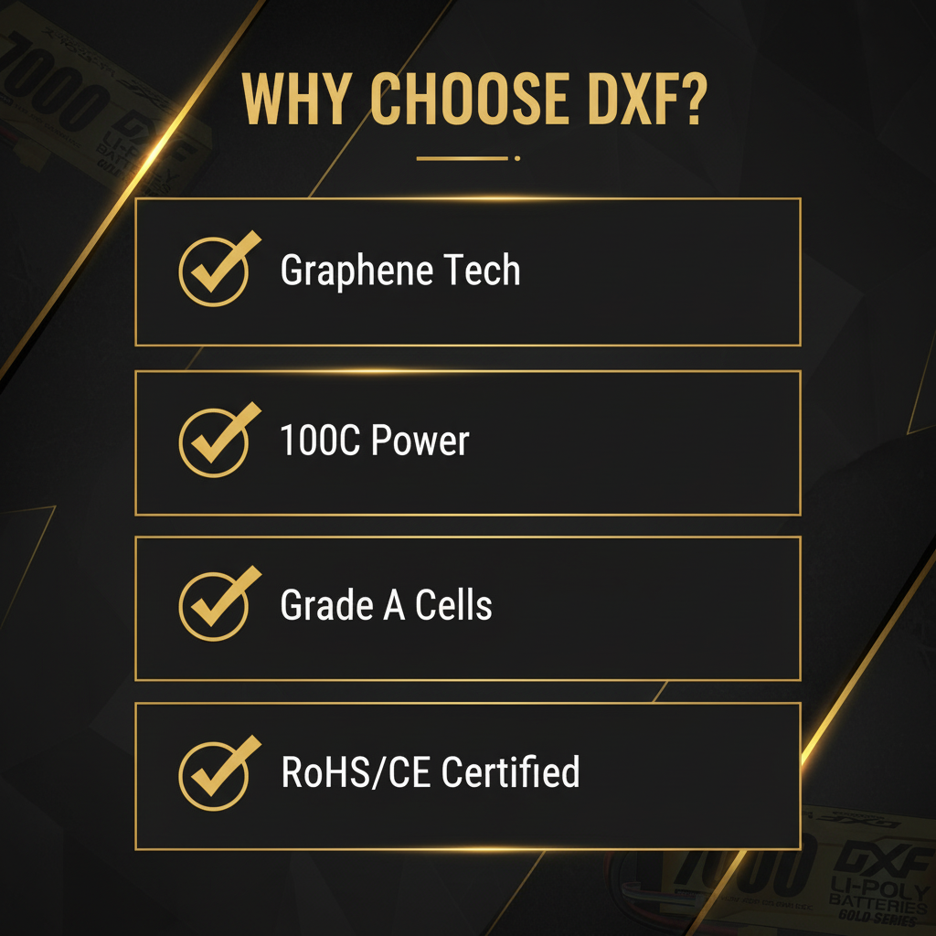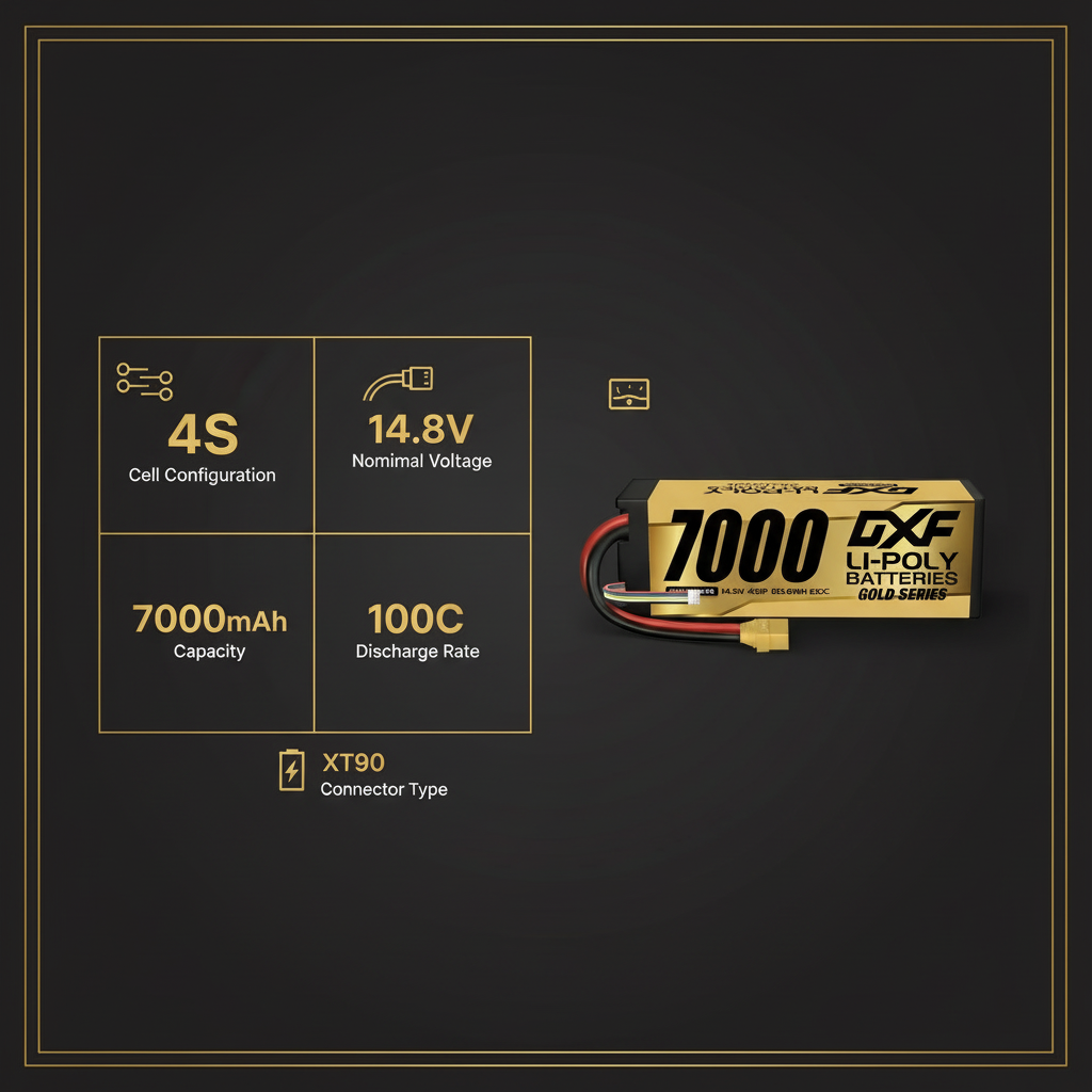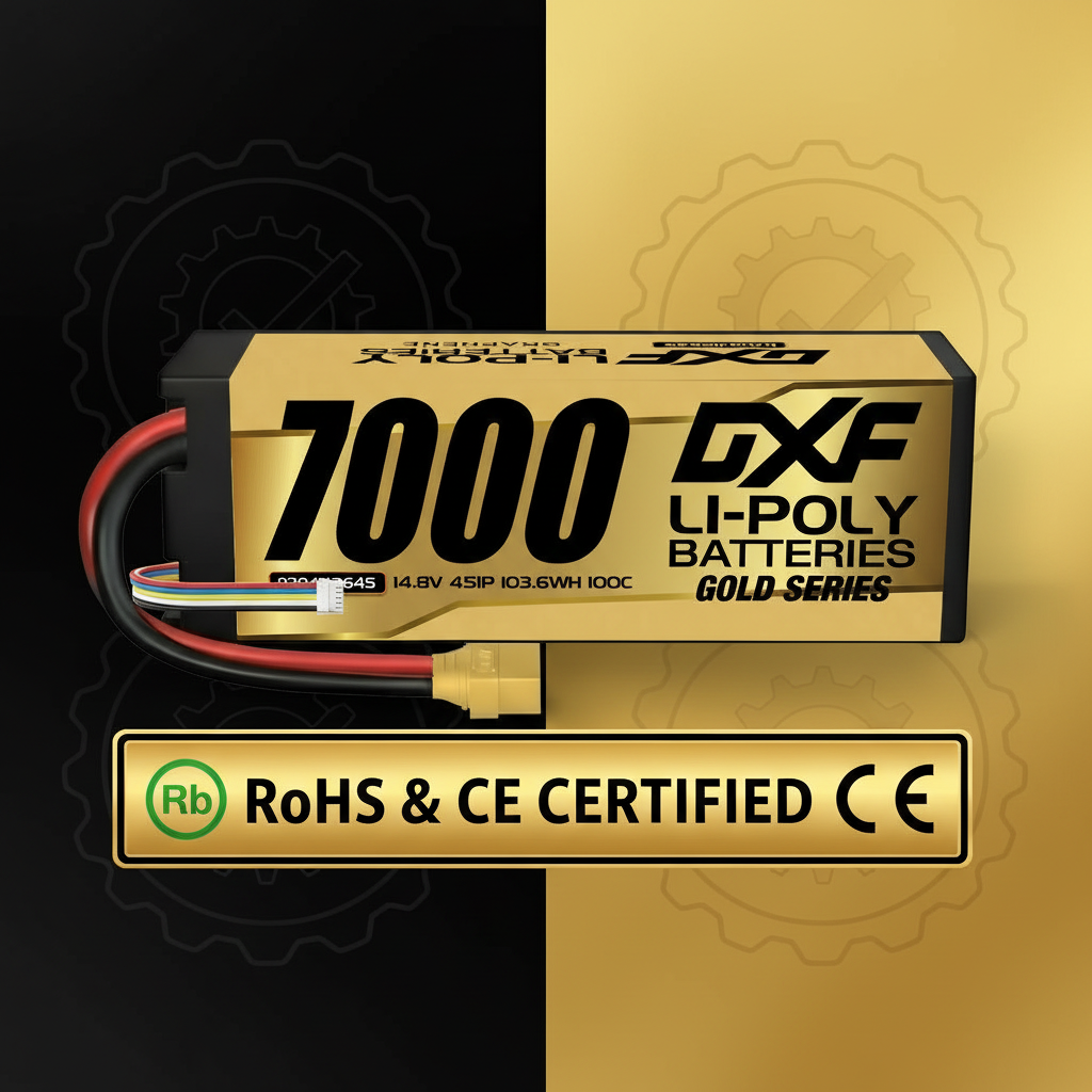 Unleash extreme power for your 1/8 and 1/10 scale RC vehicles! The DXF 4S 7000mAh HardCase battery delivers consistent 100C discharge performance with graphene-enhanced technology for superior conductivity and longer cycle life.