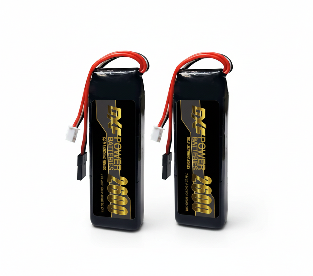 Experience reliable power delivery with DXF's 2600mAh 7.4V hardcase LiPo battery, engineered for 1:8 scale RC cars, multi-rotor aircraft, helicopters, and boats. Featuring advanced nitro technology for enhanced performance and longevity.