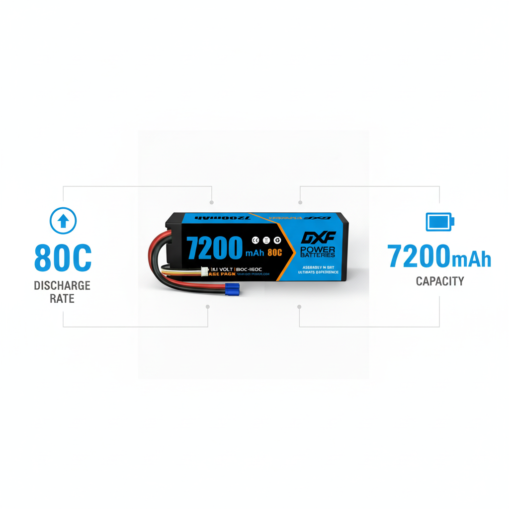Upgrade your RC experience with the DXF Blue Series hardcase LiPo battery. Engineered with 80C discharge rate, this 3S pack delivers explosive acceleration and sustained high performance for competitive racing and aggressive driving.