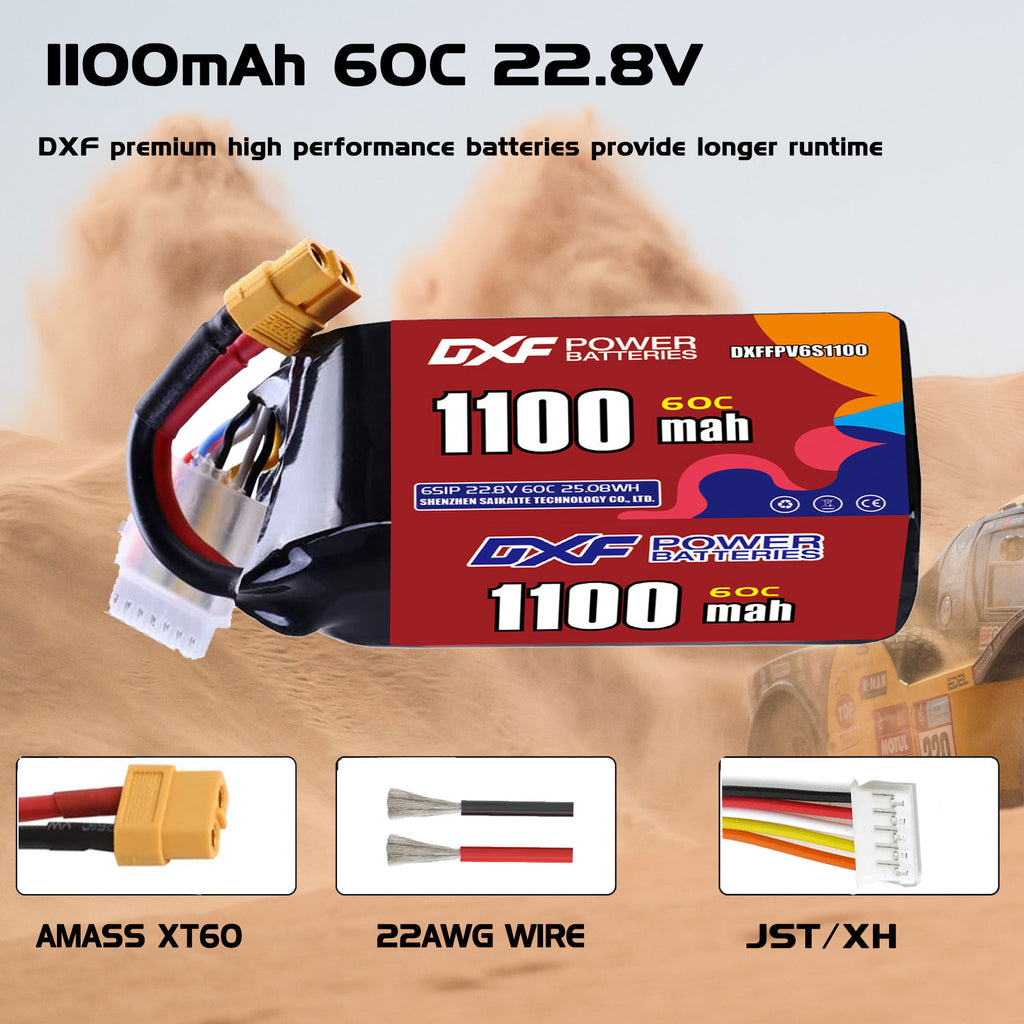 DXF 1100mAh 6S 60C 22.8V Lipo Battery Pack for FPV LiPo Battery