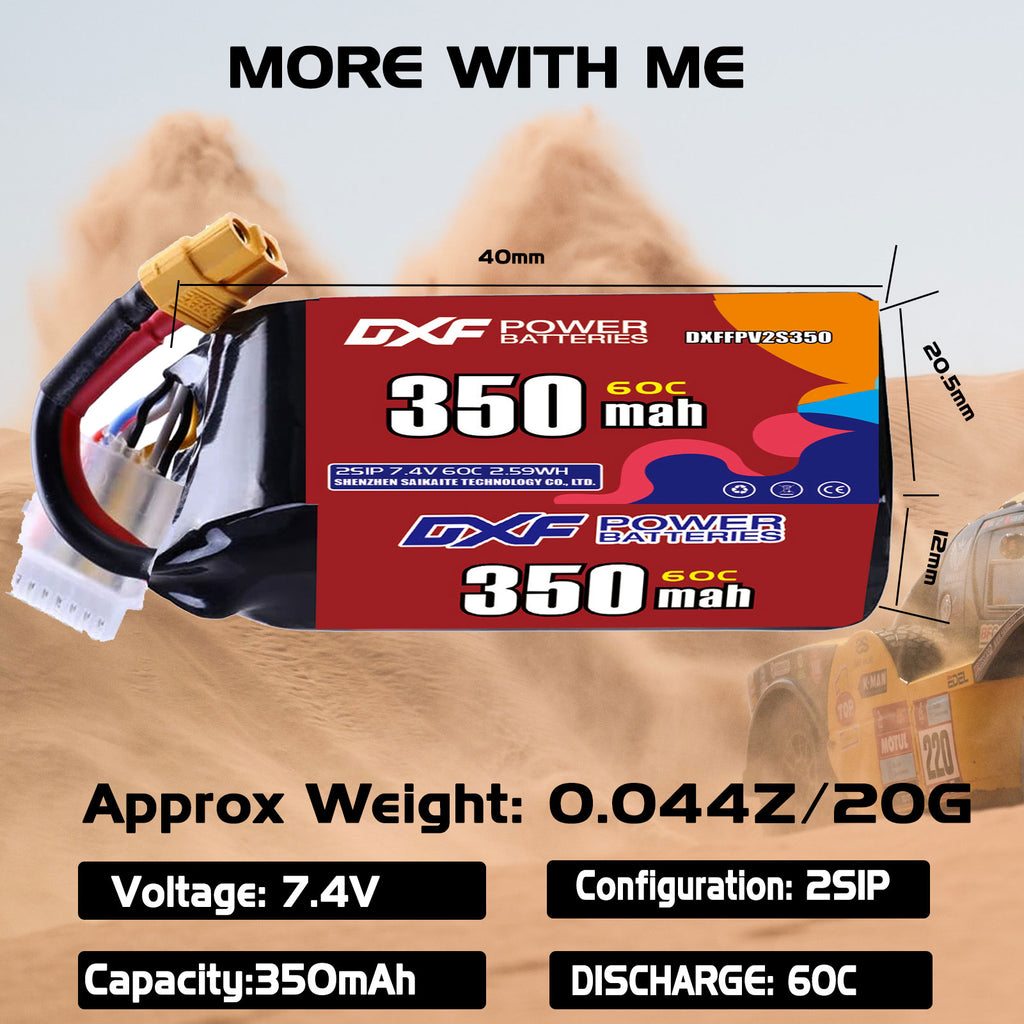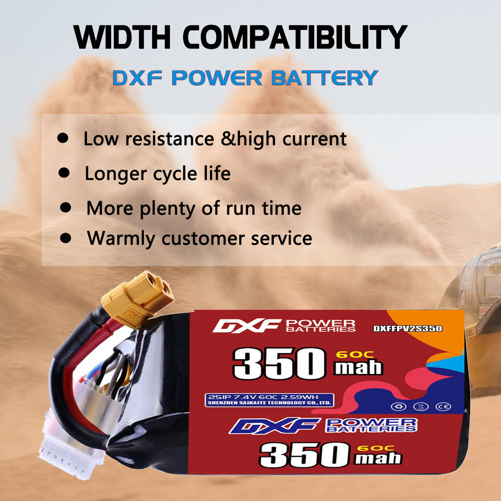 DXF 350mAh 2S 60C 7.4V Lipo Battery Pack for FPV LiPo Battery
