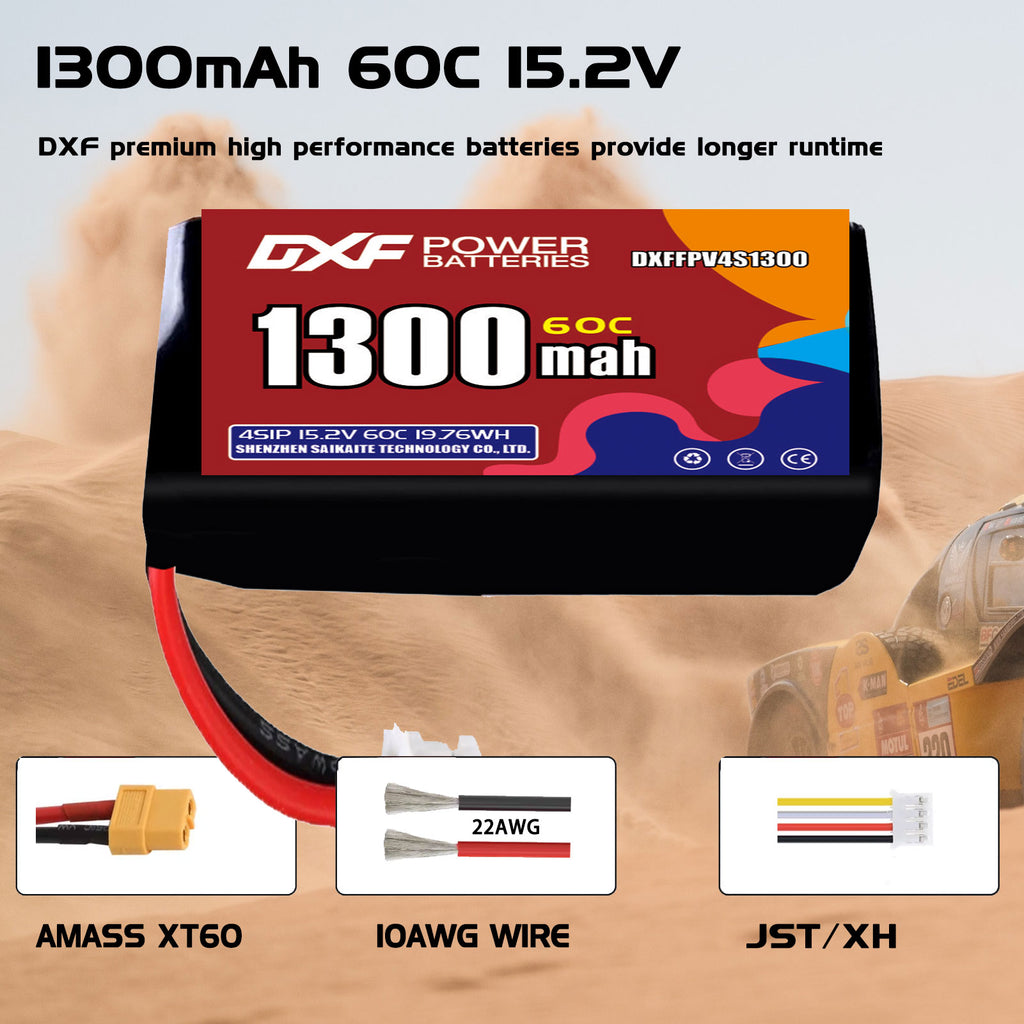 DXF 1300mAh 4S 60C 15.2V Lipo Battery Pack for FPV LiPo Battery