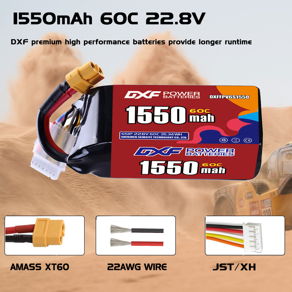 DXF 1550mAh 6S 60C 22.8V Lipo Battery Pack for FPV LiPo Battery