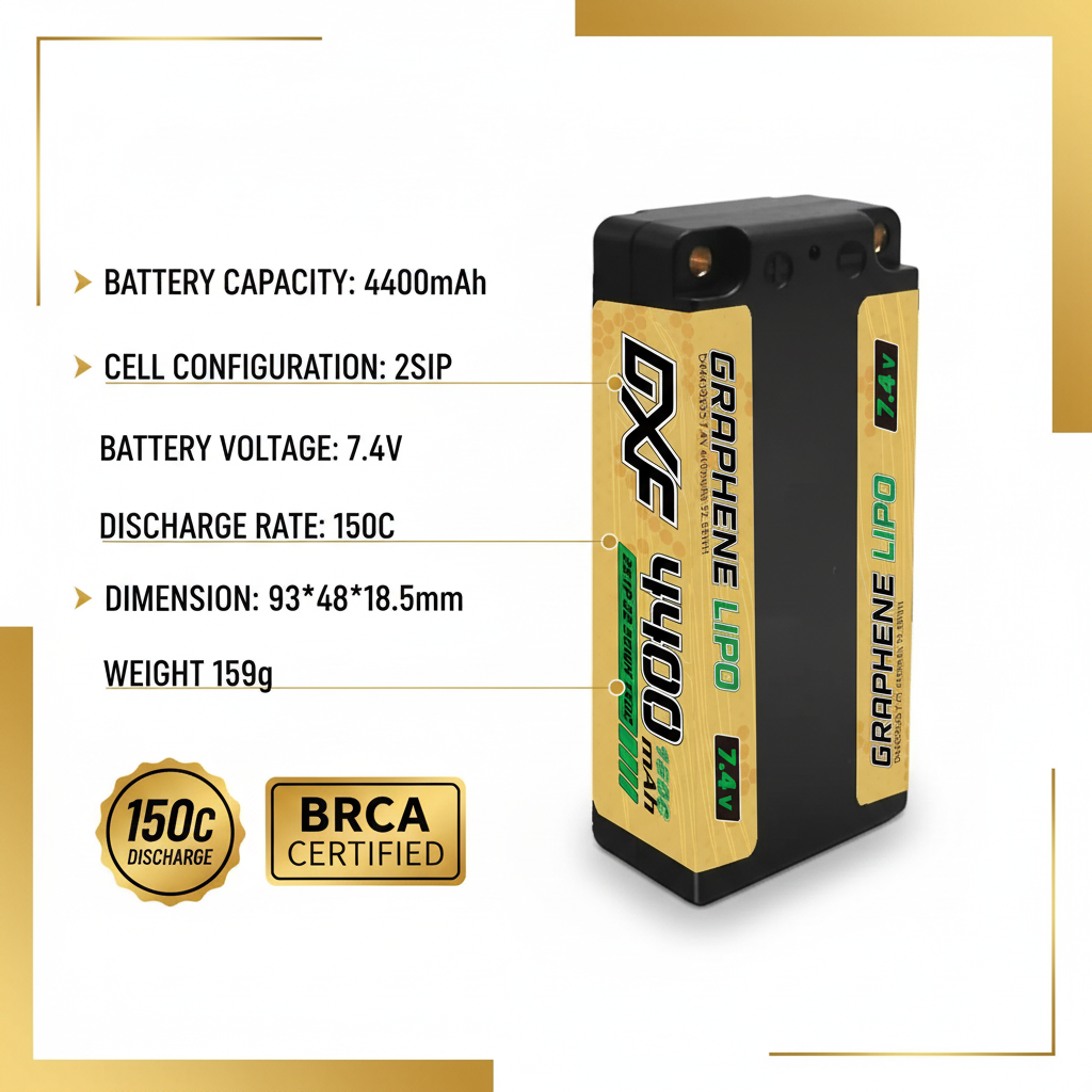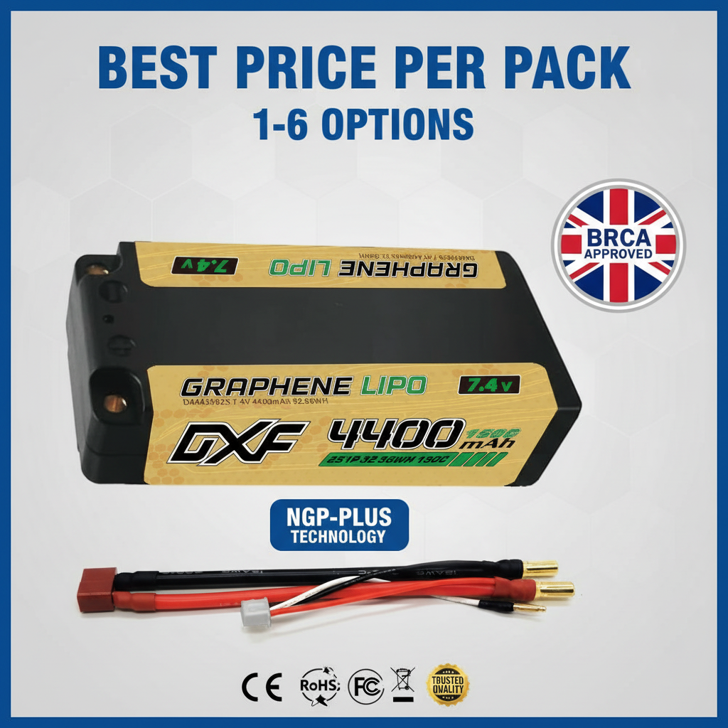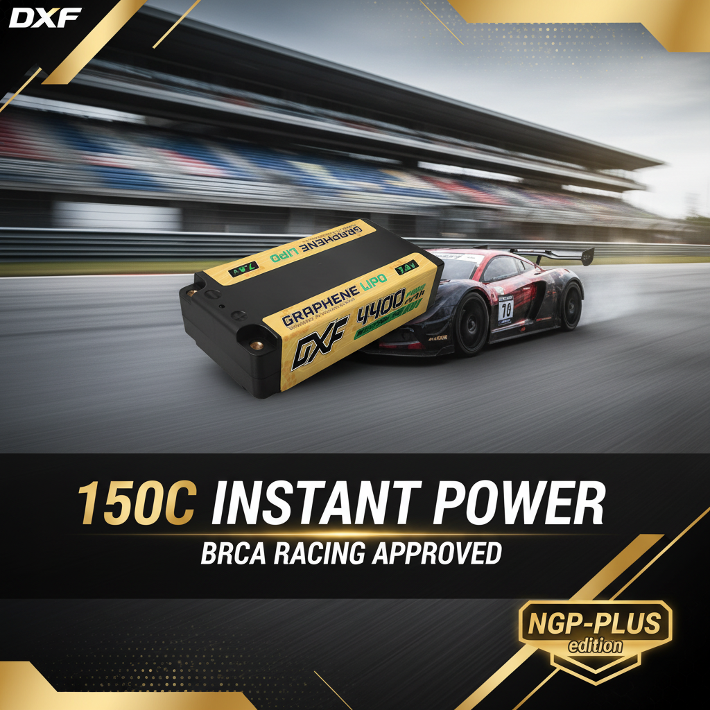 Dominate the track with 150C discharge power! The DXF NGP-PLUS version delivers professional-grade performance with official BRCA certification. Available in flexible 1-6 pack options to match your racing needs.