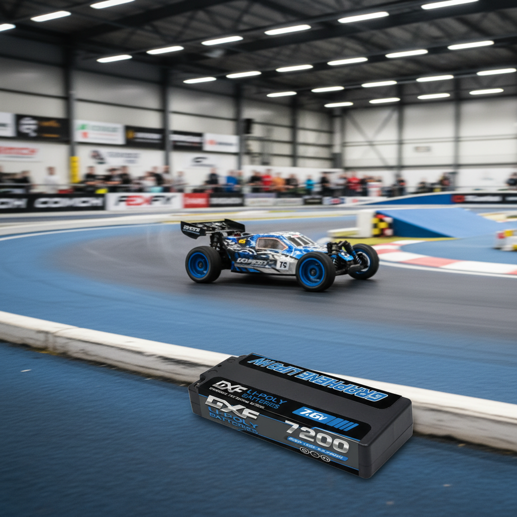 Engineered for competitive RC racing, the DXF 2S HV LiPo delivers consistent high performance with 140C discharge capability. Ideal for 1/8 scale vehicles, truggies, and touring cars demanding reliable power delivery.