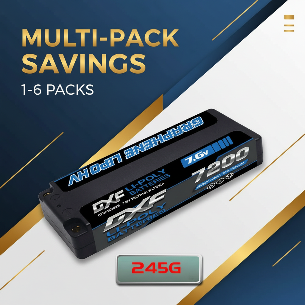 DXF 2S 7.6V 7200mAh 140C LiPo Battery – Premium Power for 1/8 RC Racing